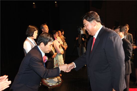 조길형 영등포구청장(오른쪽)이 자랑스런 구민상 수상자들을 축하하고 있다.