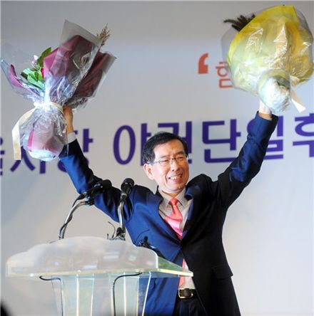 [아시아경제 김달중 기자] '바람'이 '조직'을 이겼다. 안철수 서울대 교수가 일으킨 돌풍을 업은 무소속 박원순 후보가 3일 제1야당의 박영선 민주당 후보를 꺾고 야권 통합후보로 선출됐다.박원순 후보는 3일 서울 장충체육관에서 열린 통합후보 선출 경선에서 종합 52.15%를 얻어 45.57%를 기록한 박영선 후보 누르고 단일후보로 확정됐다. 최규엽 민주노동당 후보는 2.28%에 그쳤다.박 후보는 앞서 실시한 TV 토론 배심원 평가에서 박영선 후보보다 10.3%포인트 앞섰다. 일반인 여론조사에서는 57.65%로 과반 이상 득표했다. 박영선 후보는 39.70%에 그쳤다.국민참여경선에서는 선거인단 3만명 가운데 1만7878명이 참여한 가운데 박영선 후보가 9132표를 얻어 1위를 차지했고, 박 후보가 8279표, 최 후보가 467표를 기록했다.◆박원순 '승리' 원인은= 박 후보가 야권 단일후보로 선출될 수 있었던 가장 큰 원인으로는 정당정치에 대한 시민들의 피로감으로 분석된다.여당과 야당이 대립하고 갈등을 겪으면서 정적 중요한 민생현안은 표류해왔다. 기성정당의 한계를 극복하고 대안을 찾았던 유권자들이 안철수 교수의 등장에 환호했던 것도 이러한 같은 맥락이었다.야권 지지층은 결국 정당정치의 변화에 대한 욕구에 맞물려 민주당 등 야당의 쇄신 요구가 이번 경선에서 표출된 것이다.◆박원순, '안풍' 최대 수혜자= 박 후보의 단점은 낮은 인지도였다. 참여연대, 아름다운재단, 희망제작소 등 굵직한 사회활동을 해왔지만 대중적이지 못했다.때문에 박 후보가 출마를 선언하기 직전까지 지지율은 5~9%에 불과했다. 그가 폭발적인 지지율을 얻기 시작한 것은 안 교수가 출마를 양보하고 박 후보의 지지를 선언하면서부터다.이후 박 후보의 지지율은 파죽지세로 치솟았고, 나경원 한나라당 후보를 비롯해 야권의 어떤 후보보다도 높은 경쟁률을 기록했다.◆남은 과제..민주당 지지층 흡수, 여권 검증= 통합후보로 선출됐지만 지금까지 과정보다 남은 과제가 더 험준하다.당장 민주당 지지층을 어떻게 우군으로 확보하느냐 여부가 최대 관건이다.지난해 6ㆍ2 지방선거에서 국민참여당의 유시민 경기도지사 후보가 김진표 민주당 후보를 누르고 단일후보로 선출됐지만 민주당 지지층은 유 후보를 적극 지지하지 않았다.경기도 지자체와 기초의원 선거에서 민주당이 압승한 반면, 도지사 선거는 패배한 것. 올 4월 경남 김해을 국회의원 보궐선거도 마찬가지였다. 제1야당의 당심을 어떻게 얻느냐가 필수 과제로 떠오를 수밖에 없다.여기에 한나라당의 검증 공세가 남아있다. 여야 정치권에서는 야권 경선 과정에서 박원순 후보에 대한 검증은 느슨했다는 것이 대체적인 평가다.야권의 주자가 결정된 만큼 한나라당의 공세는 민주당과 달리 치밀할 것이라는 전망이 높다. 한나라당 한 당직자는 "박원순 후보가 단일후보가 될 것이라고 보고 철저하게 준비하고 있다"며 "박영선 후보가 됐다면 검증이 어렵다는 점을 감안하면 해볼 만한 선거"라고 말했다.김달중 기자 dal@<ⓒ세계를 보는 창 경제를 보는 눈, 아시아경제(www.asiae.co.kr) 무단전재 배포금지>