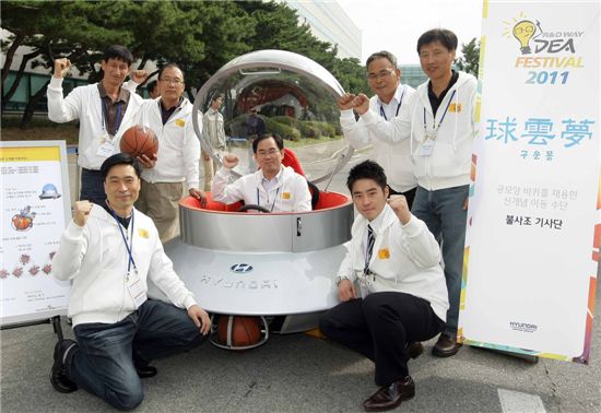 이번 대회 영예의 대상은 공 모양 바퀴 3개를 이용해 모든 방향 이동이 가능한 신개념 이동수단인 '구운몽(球雲夢)'이 선정됐다.3D 영상과 증강현실 기술을 통해 원격조정 이동장치인 '남편사랑 대리운전'이 최우수상을, 태블릿 PC를 이용한 전방위 자율주행 신개념 이동장치인 '작(作)', 대구경 듀얼 휠을 이용한 온오프로드 겸용 다목적 1인승 이동수단인 '온앤오프', 운전자의 모션을 인식해 차량을 제어하는 미래형 2인승 이동장치인 '액스바이모션' 등 세 작품이 우수상을 받았다.대상을 차지한 '구운몽' 팀의 하경표 책임연구원은 "상상만 해왔던 미래형 자동차 아이디어를 직접 작품으로 만들게 돼 설레고 즐거웠다"며 "미래 자동차 아이디어와 기술을 실현하기 위해 더욱 노력하겠다"고 말했다.5일 진행된 페스티벌 본선에는 전자, 환경, 디자인 등 현대기아차 연구소 내 전문 심사위원은 물론 대학교수 등 각 분야별 전문가가 심사위원으로 참가해 독창성, 공학적 기술성, 작품 완성도, 실용 가능성 등을 기준으로 대상 1팀, 최우수상 1팀, 우수상 3팀을 선정했다.양웅철 현대기아차 연구개발담당 부회장은 "경쟁이 더욱 치열해지는 미래 자동차 시장을 선도하기 위해서 연구원들의 창의적인 아이디어와 실행력 등이 더욱 필요하다"며 "창의적이고 즐거운 연구개발 환경을 만들어 미래를 이끌어 갈 현대기아차의 R&D 문화를 확립하자"고 말했다.김혜원 기자 kimhye@<ⓒ세계를 보는 창 경제를 보는 눈, 아시아경제(www.asiae.co.kr) 무단전재 배포금지>