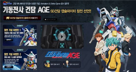[아시아경제 김철현 기자]신작 건담 애니메이션을 'SD건담 캡슐파이터' 홈페이지에서도 볼 수 있게 됐다.CJ E&M 넷마블(대표 조영기)은 'SD건담 캡슐파이터 온라인(이하 SD건담)' 홈페이지에서 9일부터 건담 신작 애니메이션을 일본과 동시 방영한다고 7일 밝혔다.이 애니메이션은 '기동전사 건담 더블오' 이후 2년 만에 방영되는 새로운 건담 시리즈로 총 50부작으로 구성돼 있으며 매주 일요일 오후 5시에 방영된다. 자세한 내용은 홈페이지(gundam.netmarble.net)에서 확인할 수 있다.김철현 기자 kch@<ⓒ세계를 보는 창 경제를 보는 눈, 아시아경제(www.asiae.co.kr) 무단전재 배포금지>