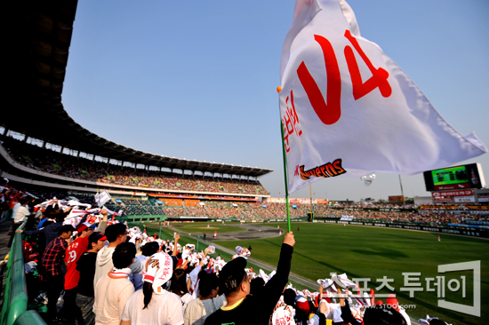 [인천=스포츠투데이 정재훈 기자] 8일 오후 문학야구장에서 열린'2011 롯데카드 프로야구' SK 와이번스와 KIA 타이거즈의 준플레이오프 1차전에 수많은 관중이 운집한 가운데 양 팀 응원단이 응원전을 펼치고 있다. 스포츠투데이 정재훈 사진기자 roze@<ⓒ아시아경제 & 재밌는 뉴스, 즐거운 하루 "스포츠투데이(stoo.com)">