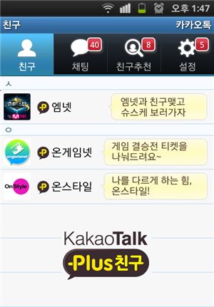CJ E&M의 서비스가 카카오톡 속으로 들어갔다. 엠넷, 온게임넷, 온스타일의 최신 정보와 이벤트를 카카오톡 친구처럼 이용할 수 있다.