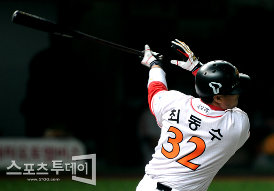 [인천=스포츠투데이 정재훈 기자] 19일 오후 문학야구장에서 열린 '2011 롯데카드 프로야구 플레이오프 3차전' SK 와이번스와 롯데 자이언츠의 경기에서 4회말 최동수가 공을 휘두르고 있다. 스포츠투데이 정재훈 사진기자 roze@<ⓒ아시아경제 & 재밌는 뉴스, 즐거운 하루 "스포츠투데이(stoo.com)">