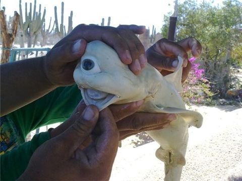 [아시아경제 이진수 기자] 지난 7월 멕시코 캘리포니아만(灣)에서 한 어부가 잡은 황소상어 뱃속을 갈라보니 외눈박이 새끼가 들어 있어 어민들이 깜짝 놀랐다.게다가 외눈박이 새끼는 피부에 색소가 없어 하얀 이른바 ‘알비노’였다. 어미 뱃속에는 외눈박이를 비롯해 새끼 10마리가 들어 있었다. 다른 9마리는 생김새와 피부색 모두 정상이었다.외눈박이 알비노 상어가 발견됐다는 소문은 인터넷에서 꼬리에 꼬리를 물며 퍼져나갔다. 이는 몸길이 90cm가 조금 넘는 외눈박이 새끼 사진이 현지 스포츠 낚시 서비스 및 요트 대여 업체 ‘피시즈 스포트피싱’ 사이트를 통해 소개된 뒤부터다.하얀 외눈박이 새끼의 눈은 입 바로 위 한가운데 자리잡고 있었다. 물론 이를 조작된 사진으로 치부하는 전문가들도 있었다.그러나 20일(현지시간) 데일리 메일 등 외신들에 따르면 멕시코의 저명 생물학자 펠리페 갈반 마가나가 직접 조사해본 결과 외눈박이 알비노 상어는 진짜임이 판명됐다.갈반 마가나는 “얼굴 중앙에 눈이 하나뿐인 이른바 ‘외눈증’(cyclopia)이라는 선천성 기형을 가진 상어였다”며 “외눈증은 희귀한 질병으로 지금까지 50건이 채 안 되는 사례가 보고됐다”고 말했다.지난 2005년에는 눈 하나에 코 없는 고양이가 태어나 세상을 떠들썩하게 만든 적이 있다. ‘키’(Cy)라는 이름으로 불린 고양이는 태어난 지 하루만에 죽고 말았다.외눈증은 키클로푸스증(cyclops症) 또는 단안증이라고도 한다. 양쪽 눈이 하나로 융합해 하나의 안와 안에 자리잡으면서 얼굴 중앙에 안구가 발생한다.원인은 확실히 밝혀지지 않았으나 물리적, 화학적, 유전적 인자가 복합적으로 작용한 결과로 알려져 있다. 코의 기형을 수반해 코가 전혀 없거나 작은 돌기만 있는 경우도 있다.뇌의 이상, 사지의 이상을 동반하기 때문에 사망률은 100%다.