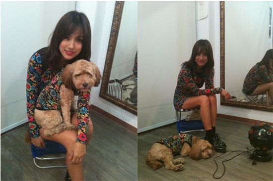 [아시아경제 장인서 기자] 가수 이효리가 애견 순심이와 맞춰 입은 커플룩을 공개해 화제다. 이효리는 지난19일 자신의 트위터를 통해 "커플룩. by steve j& yoni p"라는 글과 함께 애견 순심이와 함께 찍은 사진들을 공개했다. 공개된 사진에서 이효리는 애견 순심이와 똑같은 꽃무늬 패턴으로 디자인한 옷을 입고 다정한 포즈를 취하고 있다. 무늬는 같았지만 이효리는 미니원피스 스타일로 각선미를 뽐내고 있으며 순심이는 민소매 티셔츠 스타일로 깜찍한 매력을 발산하고 있다. 특히 이효리와 순심이의 커플룩은 유명디자이너인 '티브J& 요니P' 작품인 사실이 알려지면서 더욱 화제가 되고 있다. 하편 이효리와 순심이의 커플룩 사진을 접한 네티즌들은 "둘이 너무 잘어울려요" "순심이는 좋겠다" "애견사랑 보기 좋아요" 등의 반응을 보이고 있다. 장인서 기자 en1302@<ⓒ세계를 보는 창 경제를 보는 눈, 아시아경제(www.asiae.co.kr) 무단전재 배포금지>