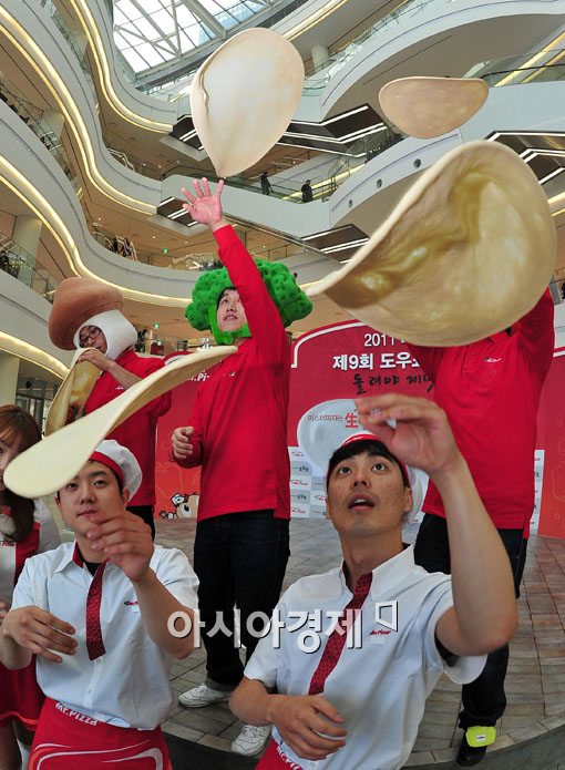 [아시아경제 윤동주 기자] 23일 서울 영등포 타임스퀘어 광장에서 열린 2011 미스터피자 도우쇼 컨테스트에 참가한 참가자들이 생도우를 돌리며 멋진 무대를 보여주고 있다.윤동주 기자 doso7@<ⓒ세계를 보는 창 경제를 보는 눈, 아시아경제(www.asiae.co.kr) 무단전재 배포금지>