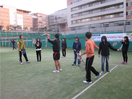 [아시아경제 박종일 기자]관악구(구청장 유종필)는 서울대학교 경영대학 테니스 동아리 TNT와 함께 지역내 중학생을 대상으로 테니스 레슨과 멘토링을 함께 실시하는 'TNT 나눔 스쿨'을 운영하고 있다.지난 9월10일부터 시작된 'TNT 나눔 스쿨'은 기존 지식중심의 멘토링이 아닌 스포츠와 학습이 어우러진 특화 멘토링으로써 학교장 추천으로 모집한 중학생 12명을 대상으로 12월까지 학교가 쉬는 토요일을 이용해 테니스 레슨과 진학, 진로 등에 대한 멘토링 시간을 갖게 된다.특히 1994년 결성된 서울대학교 경영대학 테니스 동아리 ‘TNT’(대표자 정희재)는 교내 테니스 대회 16강에 입상한 회원 10명이 중심이 돼 테니스 레슨 프로그램 뿐 아니라 라켓 등 장비와 간식 준비, 서울대 테니스장 대여 등 기획에서 운영까지 직접 진행하고 있다.