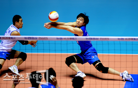 [스포츠투데이 정재훈 기자] 27일 오후 서울 장충체육관에서 열린 'NH 농협 2011-2012 V리그' 남자부 드림식스와 삼성화재의 경기에서 삼성화재 석진욱이 상대의 공격을 받아내고 있다.스포츠투데이 정재훈 사진기자 roze@<ⓒ아시아경제 & 재밌는 뉴스, 즐거운 하루 "스포츠투데이(stoo.com)">정재훈 사진기자 roze@<ⓒ아시아 대표 석간 '아시아경제' (www.newsva.co.kr) 무단전재 배포금지>