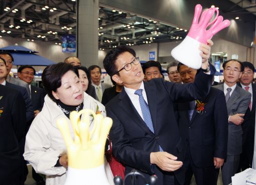 경기도와 경기중소기업종합지원센터가 지난 25일부터 27일까지 경기도 고양시 킨텍스에서 중소기업 종합박람회인'2011 G-FAIR KOREA'를 개최했다. 김문수 경기도지사가 지난 25일 행사장을 찾아 박람회에 출품된 제품들을 살피고 있다.