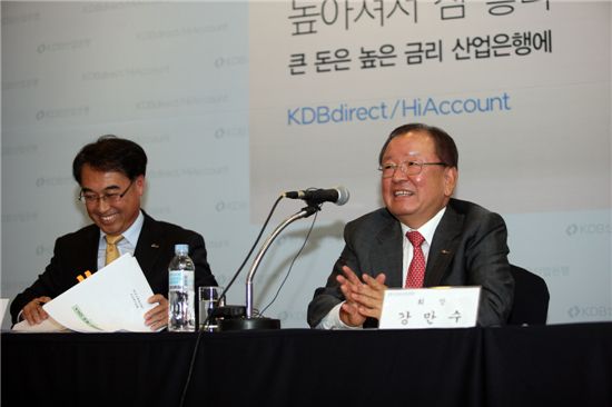 강만수 산은금융지주 회장이 다이렉트뱅킹 서비스를 발표하고 있다.