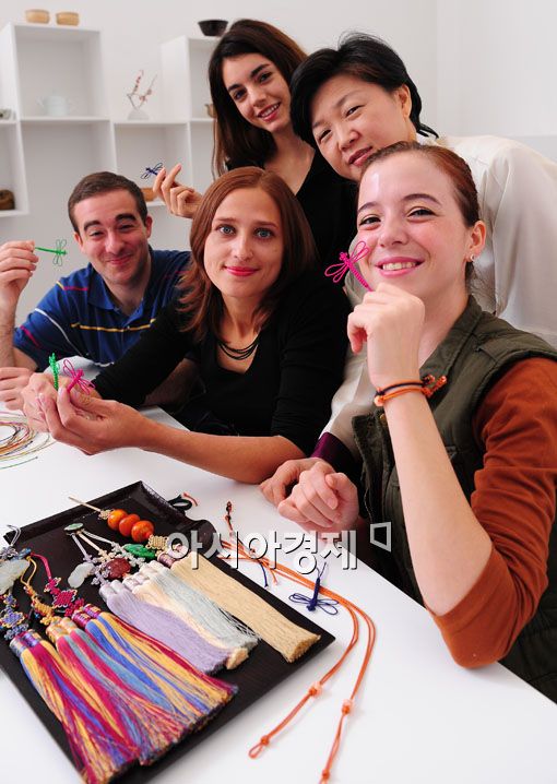[아시아경제 양지웅 기자] 1일 서울 강남구 비욘드 뮤지엄에서 열린 '2011 설화문화전'에서 박선경 매듭장 전수자가 외국인 관람객들에게 전통 매듭을 가르치고 있다.양지웅 기자 yangdoo@<ⓒ세계를 보는 창 경제를 보는 눈, 아시아경제(www.asiae.co.kr) 무단전재 배포금지>