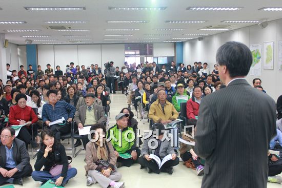 2일 오후 행정중심복합도시건설청 대강당서 열린 첫마을 공공임대아파트 공급설명회에서 오승환 LH 세종시2본부 판매팀장이 분양안내를 하고 있다