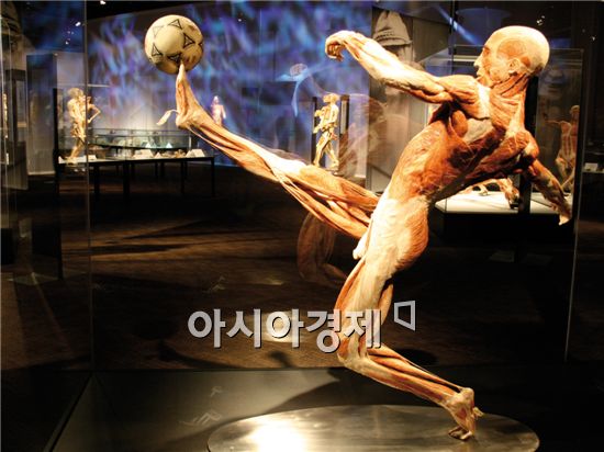 [아시아경제 태상준 기자] "엄마, 나는 어떻게 태어났어?" 어린이들의 호기심은 끝이 없다. 음식을 먹고 나면 소화가 어떻게 되고, 배변을 하게 되는지, 운동을 심하게 하고 나면 왜 팔과 다리가 아픈 건지, 왜 갑자기 할머니가 병원에 입원을 하고 수술을 하게 되었는지, 그들의 질문은 계속 이어진다. 아이들이 원하는 것은 이제 단순한 표면적 지식이 아닌, 적재적소에 알맞은 적확한 설명이다. 아니, 체험이라고 하는 편이 더 맞겠다.어린이들은 좀 더 성장하면 호기심에서 더 나아가 한층 '업그레이드'된 심층적인 의문을 갖기 시작한다. "엄마, 나는 어떻게 태어났어?"라는 일반적인 질문에 "엄마 아빠가 사랑해서……"라는 건 더 이상 통하지 않는 '구세대'적인 답변일 것이다. 관람의 시작은 '어린이의 호기심을 만족시킬' 학습용 전시 관람이라고 해도 과언이 아니다. '인체의 신비' 전(Body Worlds_용산전쟁기념관 기획전시실, 12월 31일까지)은 1995년 첫 전시회를 시작으로 유럽, 아시아, 북아메리카 등 60개 이상의 도시를 순회하며 전 세계 3300만 명 이상의 관람객들을 동원한 플라스티네이션 기법(Plastination, 인체 표본을 보존하는 방법)을 창시한 군터 폰 하겐스(Gunther von Hagens) 박사의 오리지널 전시다.