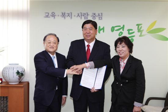 [아시아경제 박종일 기자]영등포구(구청장 조길형)는 지난 7일 오전 9시 구청장실에서 한국조리사관학교,영등포구사회복지협의회와 함께 더불어 살아가는 따뜻한 지역 공동체를 만들기 위한 '지역 사회 공헌을 위한 협약'을 체결했다. 주요 협약 내용은 ▲ 취약계층에 대한 일일 체험학습과 봉사활동 등 지원 ▲독거 어르신에 대한 도시락 지원 ▲장애인 문화체험 활동 지원 ▲ 기타 지역 사회 공헌을 위한 봉사활동 등이다.이에 따라 한국조리사관 직업전문학교는 독거 어르신들에게 도시락을 지원하고 장애인 활동지원 등에 필요한 재정과 현품을 후원키로 했다.