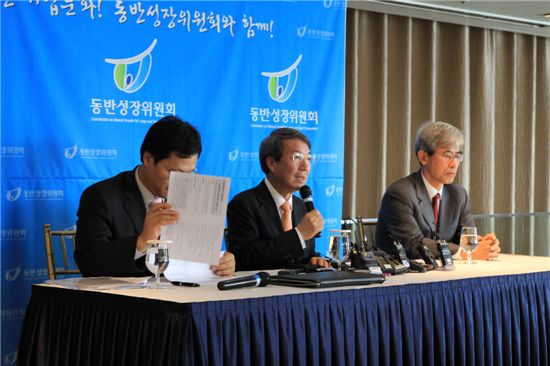 지난 4일 동반성장위원회 제9차 전체회의 후 결과를 발표하고 있는 정운찬 위원장(가운데).