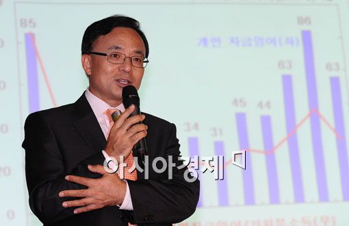 [아시아경제 양지웅 기자]아시아경제신문이 주최하고 하나금융그룹이 후원한 '5차 명품 자산관리 아카데미'가 8일 오후 서울 중구 은행회관에서 열렸다. 김영익 한국창의투자자문 대표가 '주식투자로 돈 벌 수 있는 마지막 기회를 잡아라'라는 주제로 강연하고 있다.양지웅 기자 yangdoo@<ⓒ세계를 보는 창 경제를 보는 눈, 아시아경제(www.asiae.co.kr) 무단전재 배포금지>