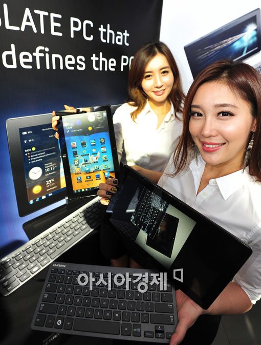 [아시아경제 윤동주 기자] 삼성전자는 9일 서울 서초구 삼성전자 딜라이트 홍보관에서 '슬레이트 PC'를 선보이고 있다. 슬레이트PC는 지난 9월 IFA2011에서 소개된 제품으로 노트북과 태블릿의 역활을 모두 수행할 수 있는 제품이다.윤동주 기자 doso7@<ⓒ세계를 보는 창 경제를 보는 눈, 아시아경제(www.asiae.co.kr) 무단전재 배포금지>
