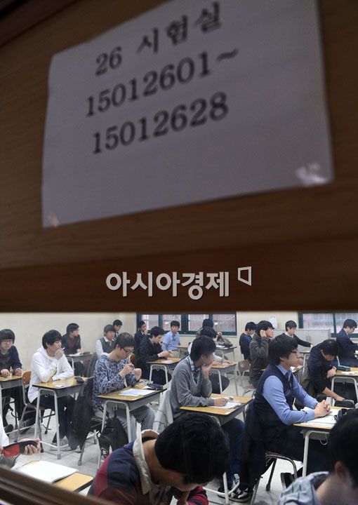 [아시아경제 양지웅 기자]2012학년도 수학능력시험이 실시된 10일 오전 서울 종로구 경복고등학교의 시험실에서 수험생들이 예비령을 기다리고 있다.양지웅 기자 yangdoo@<ⓒ세계를 보는 창 경제를 보는 눈, 아시아경제(www.asiae.co.kr) 무단전재 배포금지>