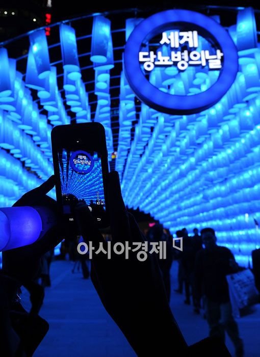 [아시아경제 양지웅 기자]'세계당뇨병의 날'인 14일 서울 청계천 장통교에서 대한당뇨병학회 주최로 열린 '희망의 푸른빛 터널' 점등식 행사에 많은 시민들이 발걸음을 옮기고 있다.양지웅 기자 yangdoo@<ⓒ세계를 보는 창 경제를 보는 눈, 아시아경제(www.asiae.co.kr) 무단전재 배포금지>