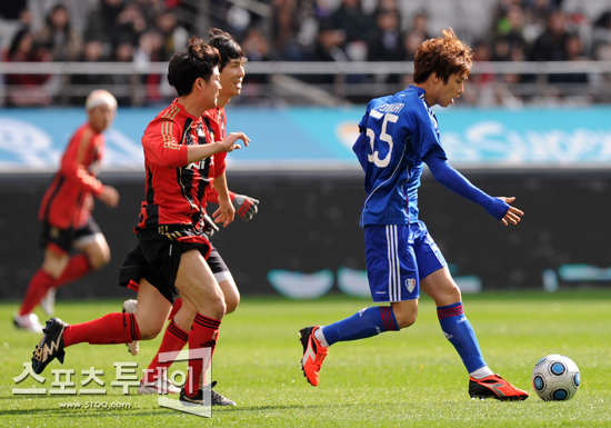 [스포츠투데이 정재훈 기자] 19일 오후 서울월드컵경기장에서 열린 '현대 오일뱅크 K리그 2011' 6강 플레이오프 FC서울과 울산 현대의 경기에 앞서 연예인 축구단 미라클FC와 FC MEN의 오픈 경기가 열렸다. 공을 드리블하는 FC MEN 최용인.스포츠투데이 정재훈 사진기자 roze@<ⓒ아시아경제 & 재밌는 뉴스, 즐거운 하루 "스포츠투데이(stoo.com)">