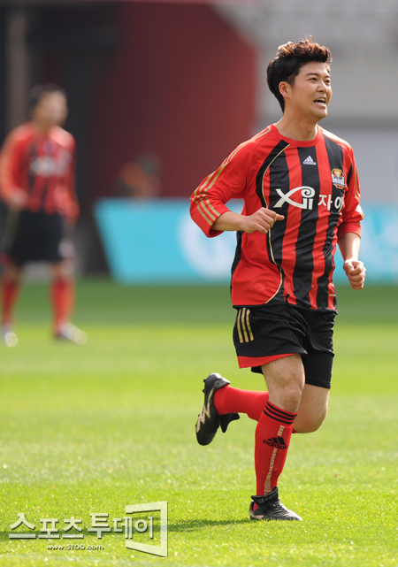 [스포츠투데이 정재훈 기자] 19일 오후 서울월드컵경기장에서 열린 '현대 오일뱅크 K리그 2011' 6강 플레이오프 FC서울과 울산 현대의 경기에 앞서 연예인 축구단 미라클FC와 FC MEN의 오픈 경기가 열렸다. '아나테이너' 전현무가 그라운드를 누비고 있다.스포츠투데이 정재훈 사진기자 roze@<ⓒ아시아경제 & 재밌는 뉴스, 즐거운 하루 "스포츠투데이(stoo.com)">