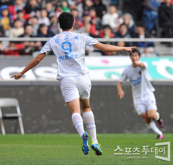 [스포츠투데이 정재훈 기자] 19일 오후 서울월드컵경기장에서 열린 '현대 오일뱅크 K리그 2011' 6강 플레이오프 FC서울과 울산 현대의 경기에서 추가골을 터뜨린 김신욱이 세레모니를 펼치고 있다.스포츠투데이 정재훈 사진기자 roze@<ⓒ아시아경제 & 재밌는 뉴스, 즐거운 하루 "스포츠투데이(stoo.com)">