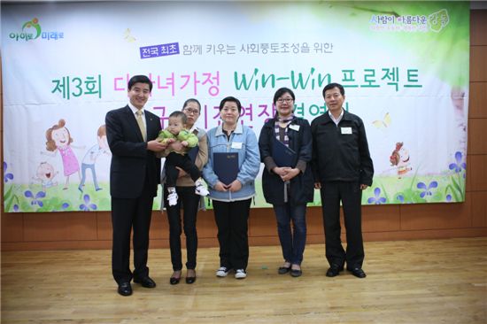 2년간 30개 기업에서 48개 가정에 총 7320만원을 지원하는 성과를 보였다. ‘다자녀가정 WIN-WIN 프로젝트’는 아이를 넷 이상 키우는 다자녀가정과 지역 내 기업을 1:1로 연결, 기업이 매월 10만원 상당의 현금 혹은 물품을 가정에 지원하도록 하는 정책이다. 이번 결연식에서는 기존 기업과 더불어 9개 기업이 새로이 참여해 21개 가정을 지원한다. 지원 기업은 강동구에 입주할 엔지니어링공제조합을 비롯 강동구운수협회 소속업체 6곳(서울승합, 영림운수 등), 농협목우촌, 플러스호텔다.프로젝트 시작 당시 휴다임, 서울통신기술 등 대기업 위주에서 중소업체들로 확대된 것이 특징이다. 1년간 다자녀가정을 지원해 온 세스코, 강동새마을금고는 신생아 1명씩의 추가 지원을 약속했다. 여러 자치단체에서 부족한 예산 탓에 저출산 대책 지원금 마련에 골치를 앓고 있지만 강동구는 기업과 지역단체들의 참여를 유도함으로써 실질적 지원은 물론 사회가 함께 양육을 책임진다는 의미를 살리고 있다. 참신한 아이디어를 정책에 잘 반영한 것을 인정받아 ‘아이낳기좋은세상 운동본부 경진대회’에서도 2년 연속 수상(2010- 국무총리상, 2011- 행정안전부 장관상)했다. 이해식 구청장은 “다자녀가정 Win-Win 프로젝트가 저출산 문제를 해결하는 데 있어 사회가 함께하는 모범 사례를 제시했다”며 “앞으로 다른 자치단체에서도 이 제도를 반영해 갈 뜻을 밝히고 있는 만큼 전국적으로 널리 시행되길 바란다”고 전했다. 강동구는 앞으로 더 많은 기업과 단체들이 이 프로젝트에 참여하도록 유도함으로써 셋째 혹은 둘째 자녀 가정까지 지원 범위를 확대할 수 있도록 노력해 나갈 계획이다. 박종일 기자 dream@<ⓒ세계를 보는 창 경제를 보는 눈, 아시아경제(www.asiae.co.kr) 무단전재 배포금지>
