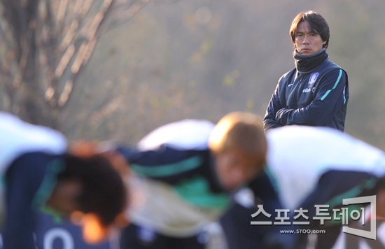 [파주=스포츠투데이 정재훈 기자] 사우디전(27일)을 앞둔 올림픽대표팀이 25일 오후 파주NFC에서 훈련을 가졌다. 홍명보 감독이 몸 푸는 선수들을 지켜보고 있다. 스포츠투데이 정재훈 사진기자 roze@<ⓒ아시아경제 & 재밌는 뉴스, 즐거운 하루 "스포츠투데이(stoo.com)">
