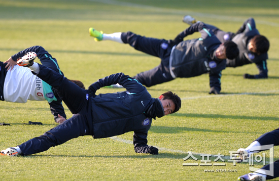 [파주=스포츠투데이 정재훈 기자] 사우디전(27일)을 앞둔 올림픽대표팀이 25일 오후 파주NFC에서 훈련을 가졌다. 몸을 풀고 있는 홍명보호.스포츠투데이 정재훈 사진기자 roze@<ⓒ아시아경제 & 재밌는 뉴스, 즐거운 하루 "스포츠투데이(stoo.com)">