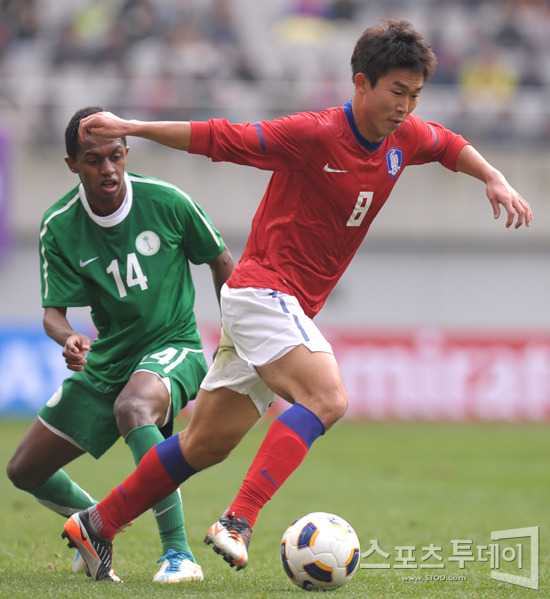 [스포츠투데이 정재훈 기자] 27일 오후 서울월드컵경기장에서 열린 2012 런던 올림픽 아시아지역 최종예선 A조 3차전 한국과 사우디아라비아의 경기에서 윤빛가람이 돌파를 시도하고 있다.스포츠투데이 정재훈 사진기자 roze@<ⓒ아시아경제 & 재밌는 뉴스, 즐거운 하루 "스포츠투데이(stoo.com)">