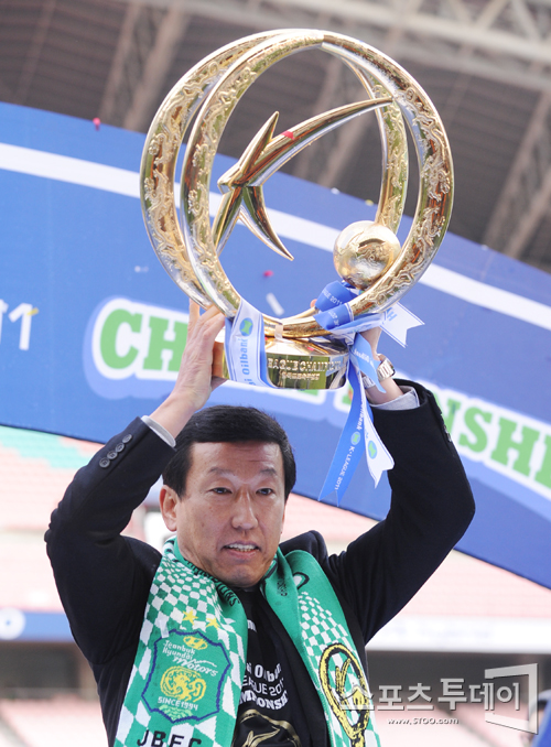 [전주=스포츠투데이 정재훈 기자] 전북 현대 모터스가 2011년 K리그 챔피언의 자리에 올랐다. 전북은 4일 오후 전주월드컵경기장에서 열린 '현대 오일뱅크 K리그 2011' 챔피언결정전 2차전에서 루이스의 결승골로 2:1 승리를 거두며 K리그 우승 트로피를 들어올렸다. 스포츠투데이 정재훈 사진기자 roze@<ⓒ아시아경제 & 재밌는 뉴스, 즐거운 하루 "스포츠투데이(stoo.com)">