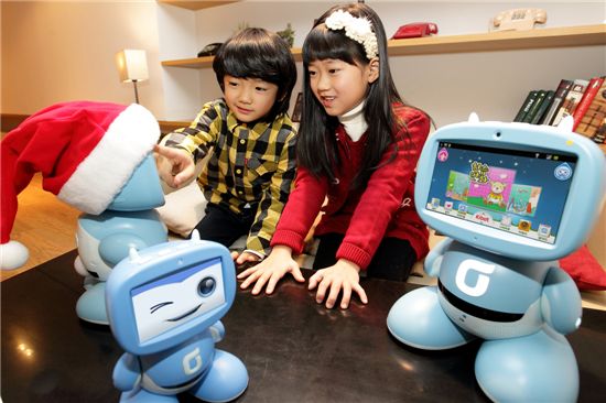 KT는 영유아부터 초등학교 어린이까지 다양한 교육 콘텐츠와 멀티미디어 기능을 즐길 수 있는 로봇 ‘키봇2’를 크리스마스 선물로 줄 수 있도록 예약판매를 7일부터 시작한다. 사진은 아이들이 키봇2를 이용중인 모습<br /> <br /> <br /> <br />