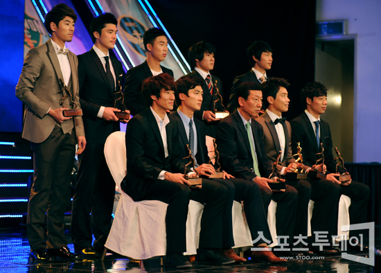 [스포츠투데이 정재훈 기자] 6일 오후 홍은동 그랜드힐튼호텔 컨벤션센터 컨벤션홀에서 열린 '2011 현대오일뱅크 K리그 대상 시상식'에서 수상자들이 기념촬영을 하고 있다.스포츠투데이 정재훈 사진기자 roze@<ⓒ아시아경제 & 재밌는 뉴스, 즐거운 하루 "스포츠투데이(stoo.com)">