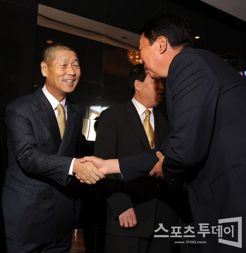 [스포츠투데이 정재훈 기자] 9일 오전 청담동 리베라 호텔에서 열린 일구회 시상식에 참석한 김성근 고양 원더스 감독과 선동열 KIA 타이거즈 감독이 악수를 나누고 있다.스포츠투데이 정재훈 사진기자 roze@<ⓒ아시아경제 & 재밌는 뉴스, 즐거운 하루 "스포츠투데이(stoo.com)">