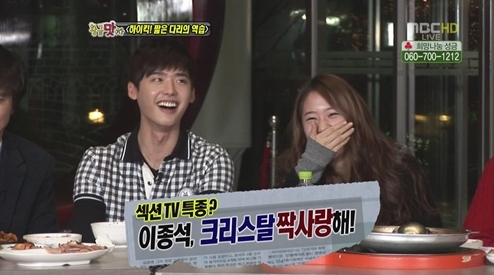 [아시아경제 장인서 기자] 배우 이종석이 걸그룹 f(X)(에프엑스) 멤버 크리스탈에게 사심(?)을 드러냈다.11일 방송된 MBC '섹션TV 연예통신'에는 MBC 일일시트콤 '하이킥3: 짧은 다리의 역습' 출연 배우들이 출연, 솔직한 입담을 펼쳤다.특히 이날 이종석은 "요즘 크리스탈에게 마음이 있다"라고 밝혀 주위의 관심을 집중시켰다. 이에 박하선은 "이종석이 자신에게 관심이 있다가 크리스탈에게 옮겨갔으며 최근에는 배우 김지원에게 남다른 마음을 품고 있는 것 같다"고 폭로했다.그러자 이종석은 "요즘에도 크리스탈이 좋다"라며 "대기실이 붙어 있어서 자주 놀러가다 보니까 그렇다"고 해명했다. 하지만 박하선 "대기실은 다른 배우들도 다 붙어있다"라고 응수해 웃음을 자아냈다.한편 방송을 본 네티즌들은 "열애설 터지겠다" "진짜 좋아하는 듯?" "잘 어울리긴 하는데 수정인 안돼" 등 다양한 반응을 보였다.장인서 기자 en1302@<ⓒ세계를 보는 창 경제를 보는 눈, 아시아경제(www.asiae.co.kr) 무단전재 배포금지>
