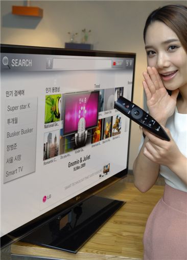 [아시아경제 박성호 기자]LG전자가 내년 1분기에 출시할 2012년형 매직모션 리모컨을 공개했다. 이 리모컨은 기존 매직모션 리모컨의 기능을 대폭 강화해 시네마 3D 스마트 TV 활용도와 사용자 편의성을 한층 높였다. 기존 '포인팅 (Pointing)' 기능 외 ▲음성인식(Voice Recognition) ▲휠(Wheel) ▲매직 제스쳐(Magic Gesture) 등 3 가지 독특한 기능이 더해져 '4 모드(mode) 리모컨'으로 불린다. 2012년형 매직모션 리모컨의 가장 큰 특징은 음성인식(Voice Recognition) 기능이다. 이 기능은 음성만으로도 문자 입력이 가능해 인터넷 검색 시 자판을 눌러야 하는 번거로움을 덜었다. 이 기능은 특히 SNS 서비스 이용 시 유용하게 쓰일 것으로 기대된다.