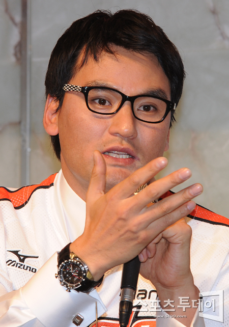 [스포츠투데이 정재훈 기자] 한화 이글스 박찬호가 20일 오전 중구 소공로에 위치한 플라자 호텔에서 입단식을 가졌다. 취재진의 질문에 답하는 박찬호.스포츠투데이 정재훈 사진기자 roze@<ⓒ아시아경제 & 재밌는 뉴스, 즐거운 하루 "스포츠투데이(stoo.com)">