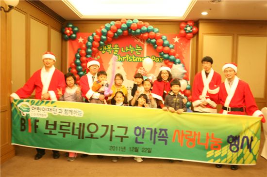 [아시아경제 최대열 기자]보루네오가구는 위탁가족 구성원들간 화합을 도모하기 위해 지난 22일 위탁가정의 날 기념 행복을 나누는 크리스마스 행사를 후원했다고 밝혔다.회사는 이날 판매수익금 일부를 기부하고 아이들이 필요한 학용품 및 겨울용품 등을 선물로 나눠줬다. 이날 행사에는 위탁아동 및 부모 120여명이 함께 했다. 회사 관계자는 "가족 행복을 최우선 생각하는 기업으로 앞으로 따뜻한 가족애를 보여주고 가정의 화합을 도모하기 위한 나눔활동을 적극 펼치겠다"고 말했다.최대열 기자 dychoi@<ⓒ세계를 보는 창 경제를 보는 눈, 아시아경제(www.asiae.co.kr) 무단전재 배포금지>