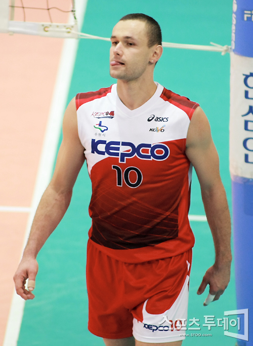 [수원=스포츠투데이 정재훈 기자] 27일 오후 수원실내체육관에서 열린 'NH 농협 2011-2012 V리그' 남자부 KEPCO와 신협상무의 경기에서 공격을 성공시킨 안젤코가 혀를 내밀고 있다.스포츠투데이 정재훈 사진기자 roze@<ⓒ아시아경제 & 재밌는 뉴스, 즐거운 하루 "스포츠투데이(stoo.com)">정재훈 사진기자 roze@<ⓒ아시아 대표 석간 '아시아경제' (www.newsva.co.kr) 무단전재 배포금지>