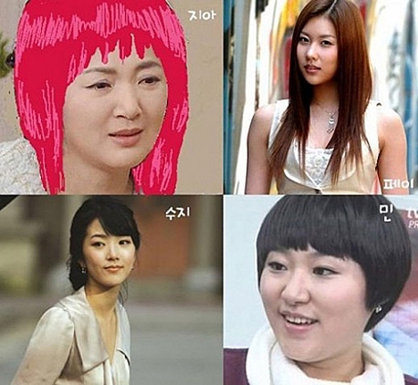[아시아경제 장인서 기자] 걸그룹 미쓰에이의 닮은꼴 사진 '신개념 미쓰에이'가 네티즌들 사이에 화제다.최근 여러 온라인 커뮤니티 게시판에는 '신개념 미쓰에이'라는 제목으로 미쓰에이 멤버들의 닮은꼴 연예인 사진이 게재됐다.사진에는 미쓰에이 멤버인 페이, 지아, 수지, 민과 절묘하게 닮은 연예인들을 찾아내 이름과 함께 배치해놨다.사진의 왼쪽 상단부터 지아는 중견 탤런트 권은아와, 페이는 '천상지희'의 스테파니, 민은 개그우먼 김현숙, 수지는 배슬기와 닮은 모습.신개념 미쓰에이 사진을 본 네티즌들은 "은근히 빵 터지네요" "페이랑 스테파니는 진짜 닮은 듯" "누가 만들었는지 재치 있다" 등의 반응을 보였다.장인서 기자 en1302@<ⓒ세계를 보는 창 경제를 보는 눈, 아시아경제(www.asiae.co.kr) 무단전재 배포금지>