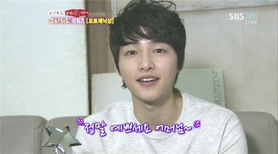 송중기: “엄마, 예뻤어. 괜찮아”- 송중기가 28일 SBS <한밤의 TV 연예>에서 한 말. 송중기는 2011 <한밤의 TV 연예> ‘고마워요’ 어워즈에서 포토제닉 상을 받았다. 자신의 어린 아이 시절 사진을 공개했던 송중기는 상을 받으며 “사실 그 때 사진을 공개해서 엄마한테 혼났다”며 “젊으셨을 때 사진이 공개돼서 전화를 많이 받으신 거 같다. 근데 엄마, 예뻤어. 괜찮아”라고 말했다.<hr/>