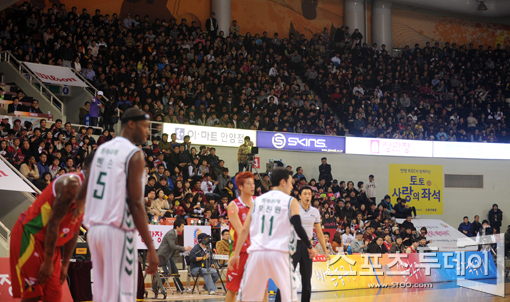 [안양=스포츠투데이 정재훈 기자] 1일 오후 안양실내체육관에서 열린 '2011-2012 KB 국민카드 프로농구' 안양 KGC 인삼공사와 원주 동부 프루미의 경기에 많은 관중들이 운집했다.스포츠투데이 정재훈 사진기자 roze@<ⓒ아시아경제 & 재밌는 뉴스, 즐거운 하루 "스포츠투데이(stoo.com)">