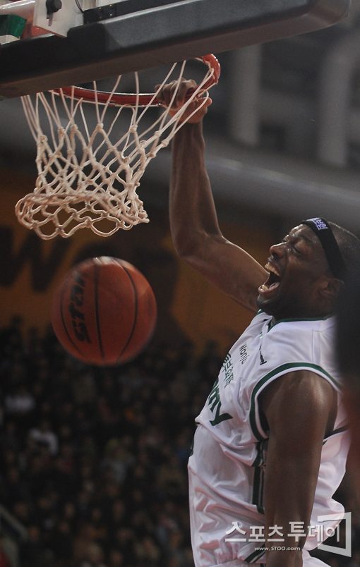 [안양=스포츠투데이 정재훈 기자] 1일 오후 안양실내체육관에서 열린 '2011-2012 KB 국민카드 프로농구' 안양 KGC 인삼공사와 원주 동부 프루미의 경기에서 로드 벤슨이 덩크슛을 성공시키고 있다.스포츠투데이 정재훈 사진기자 roze@<ⓒ아시아경제 & 재밌는 뉴스, 즐거운 하루 "스포츠투데이(stoo.com)">