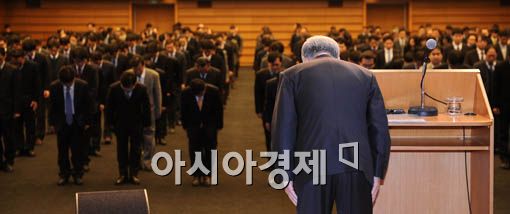 [아시아경제 양지웅 기자] 손경식 대한상의 회장(가운데)이 13일 오전 서울 남대문 대한상공회의소에서 열린 '2012년 대한서울상공회의소 시무식'에서 직원들과 새해인사를 나누고 있다. 양지웅 기자 yangdoo@<ⓒ세계를 보는 창 경제를 보는 눈, 아시아경제(www.asiae.co.kr) 무단전재 배포금지>