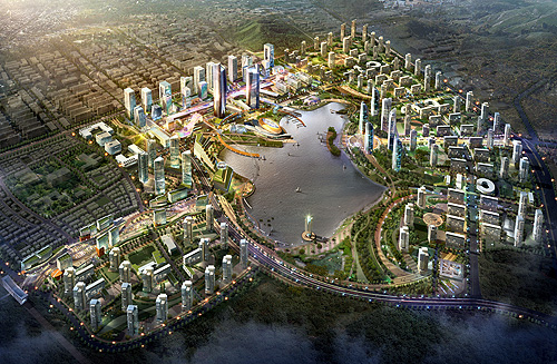 천안시의 국제비즈니스파크 조감도. 6조4000억원을 들여 2017년까지 약 4만5000명 수용 규모로 컨벤션센터와 호텔 등을 지을 계획이다.