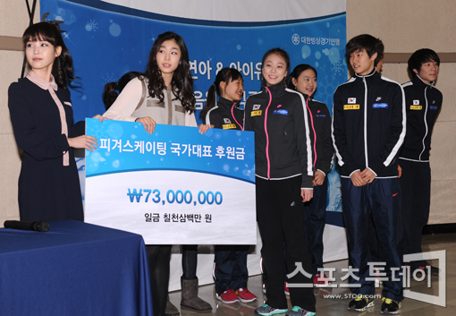 [스포츠투데이 정재훈 기자] 피겨여왕 김연아와 가수 아이유가 4일 오후 태릉선수촌 국제 스케이트장에서 '얼음꽃' 음원 수익금 전달식을 가졌다. 스포츠투데이 정재훈 사진기자 roze@<ⓒ아시아경제 & 재밌는 뉴스, 즐거운 하루 "스포츠투데이(stoo.com)">정재훈 사진기자 roze@<ⓒ아시아 대표 석간 '아시아경제' (www.newsva.co.kr) 무단전재 배포금지>