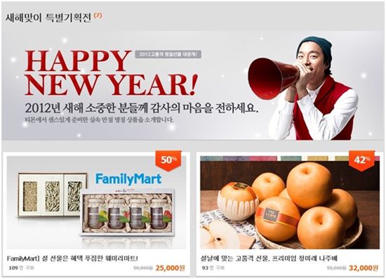 [아시아경제 김철현 기자]소셜커머스 업체 티켓몬스터(대표 신현성)는 오는 15일까지 '2012년 설 선물 특별 기획전'을 개최한다고 5일 밝혔다.티켓몬스터는 이번 특별 기획전을 위해 한우선물세트, 산양산삼, 정관장 홍삼, LG생활건강 선물세트, 유니레버 명절 선물세트, 잘풀리는집 선물세트, 3M 막대걸레 선물세트 등 다양한 상품을 준비했으며 최대 55% 할인된 가격에 판매한다고 설명했다.또한 오는 8일까지 나주배를 최대 42% 할인된 3만2000원에, 토종 한우암소는 부위별로 최대 49% 할인된 가격에 판매할 예정이다. 나주배는 설날 전에 배달될 수 있도록 16일 전에 출고되며 토종 한우는 신선한 냉장육 상태로 배송될 계획이다.박영선 티켓몬스터 상품기획팀장은 "예년에 비해 빨리 찾아온 설을 맞아 고객들의 편의를 위해 이번 기획전을 준비했다"고 말했다.김철현 기자 kch@<ⓒ세계를 보는 창 경제를 보는 눈, 아시아경제(www.asiae.co.kr) 무단전재 배포금지>
