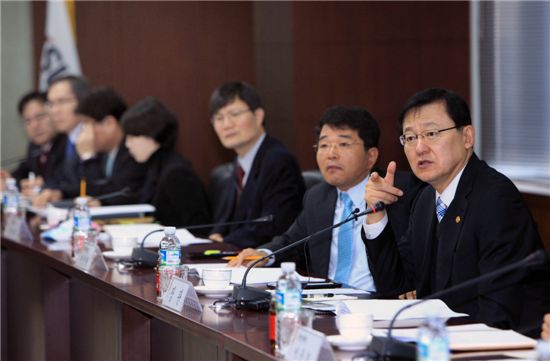 [아시아경제 김혜원 기자] 홍석우 지식경제부 장관은 5일 서울 종로구 한국무역보험공사 회의실에서 조계륭 무역보험공사 사장, 임직원, 직급별 대표를 비롯한 관계자 30여명이 참석한 가운데 '수출 지원 현장 간담회'를 주재했다.홍 장관은 이 자리에서 "무역보험이야말로 우리 수출의 마중물이며, 우리가 기적이라 부르는 무역 1조달러 달성 이면에는 무역보험의 역할이 컸다"면서 무역보험을 통한 중소기업과 신흥국에 대한 수출 지원 강화 방안에 대해 의견을 교환했다.김혜원 기자 kimhye@<ⓒ세계를 보는 창 경제를 보는 눈, 아시아경제(www.asiae.co.kr) 무단전재 배포금지>