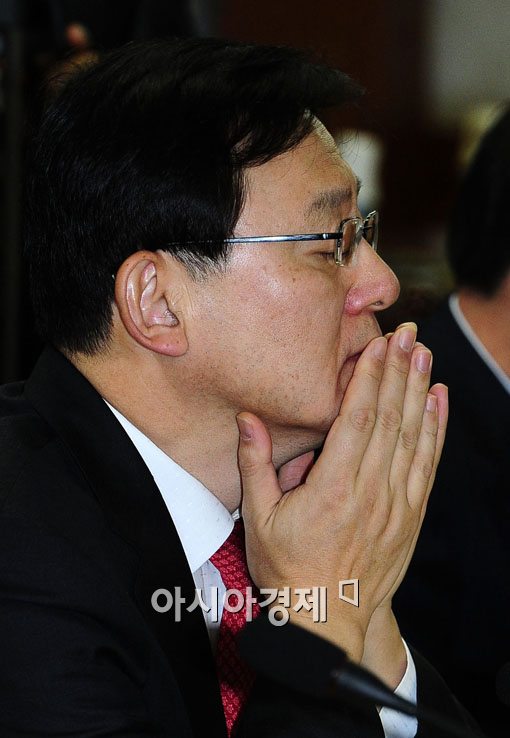 [아시아경제 윤동주 기자] 연일 강추위가 계속되면서 전기를 이용한 난방용 전기 수요량이 급증하면서 전력 예비율이 6%대로 추락하는 등 전력난이 우려되는 가운데 6일 서울 세종로 정부종합청사에서 열린 국가정책조정회의에 참석한 홍석우 지식경제부 장관이 눈을 감고 생각에 잠겨 있다. 이날 회의에서 김황식 국무총리는 "전력 수급 관리에 차질이 없도록 관리하라"고 말했다.윤동주 기자 doso7@<ⓒ세계를 보는 창 경제를 보는 눈, 아시아경제(www.asiae.co.kr) 무단전재 배포금지>