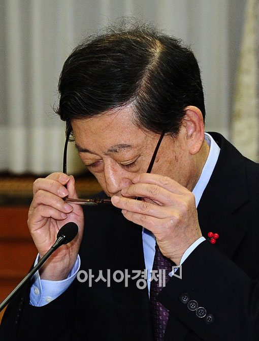 [아시아경제 윤동주 기자] 6일 서울 세종로 정부종합청사에서 열린 국가정책조정회의에 참석한 김황식 국무총리가 회의 시작전 안경을 고쳐쓰고 있다.윤동주 기자 doso7@<ⓒ세계를 보는 창 경제를 보는 눈, 아시아경제(www.asiae.co.kr) 무단전재 배포금지>